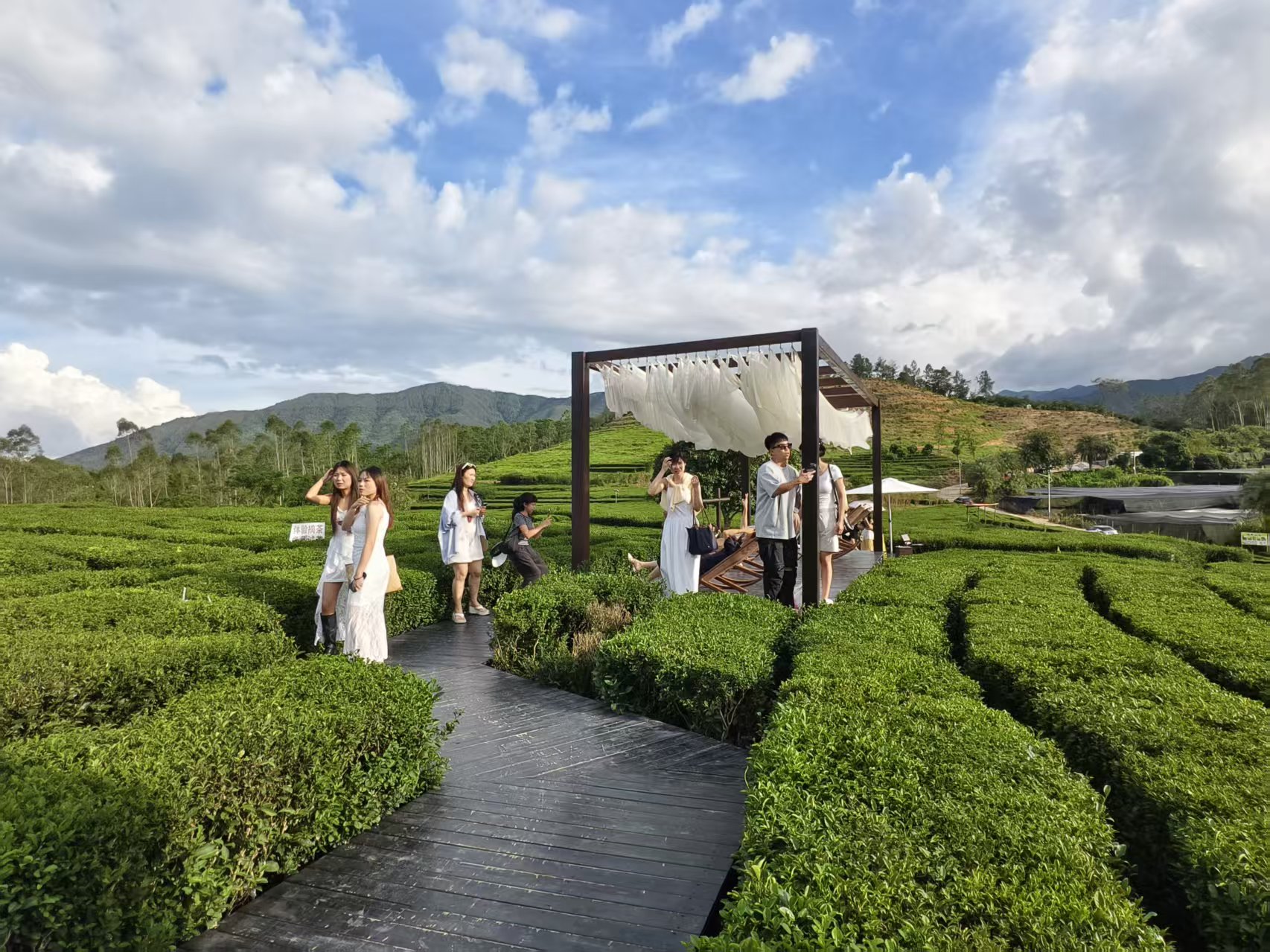 而首次到访的东莞游客叶女士,她通过社交软件了解到这个热门打卡地后,便趁着国庆假期和家人、朋友一同前来游玩。实际体验后,叶女士直言茶园景色远超网上描述,“这里美得像仙境一样,体验非常棒。”