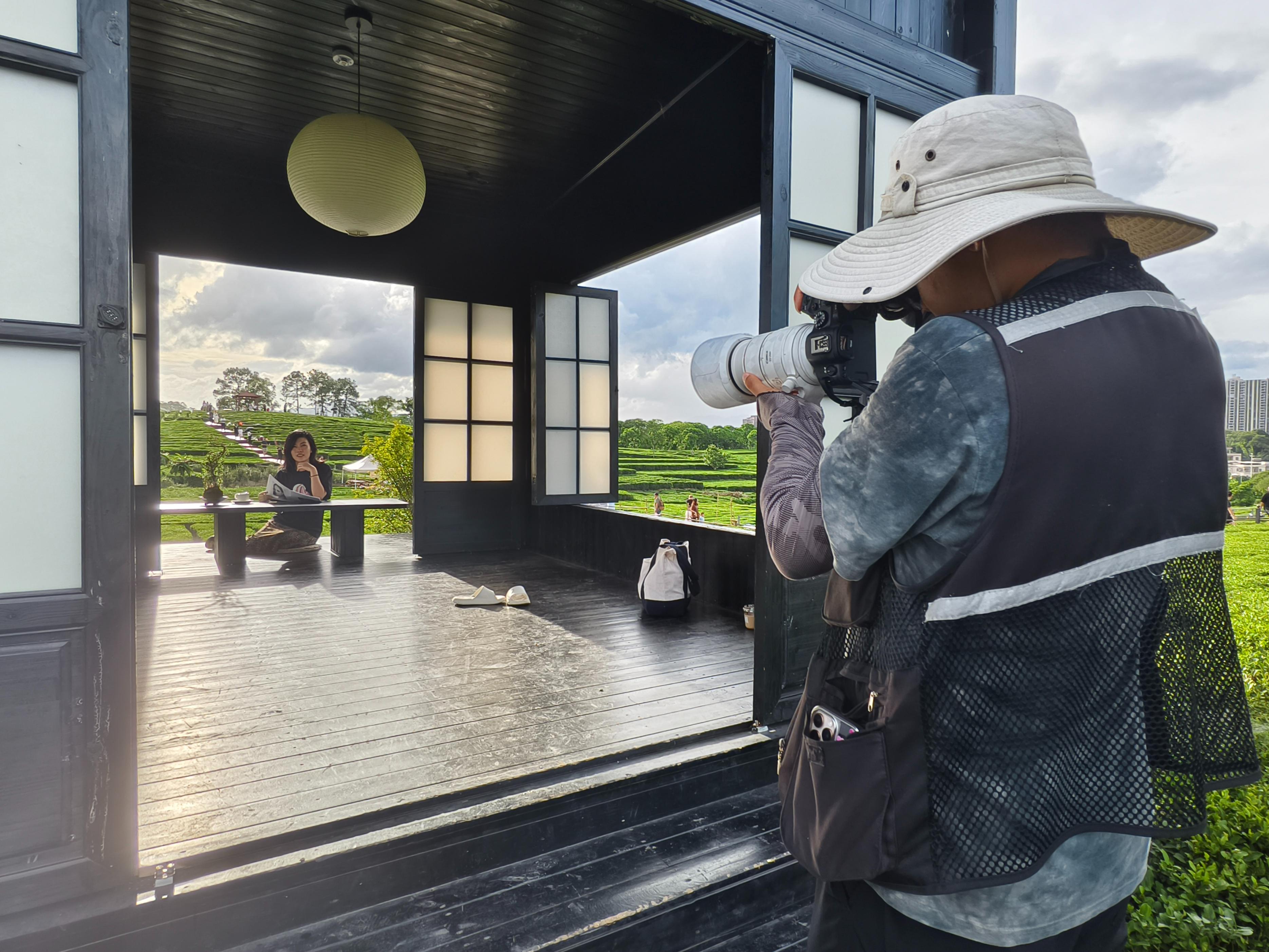 据了解,“逸山海·小茶园”咖啡店自今年三月底开业以来,凭借万亩茶园的独特梯田景观迅速成为网红打卡地,前不久还成功入选第三批“粤式新潮流”广东文旅消费新业态热门场景。咖啡店负责人陈宗行告诉记者,国庆期间,店内客流量比平日多了三、四倍,大多是来自珠三角地区的游客。为了接住这波热度,店里特意推出了国庆限定的旅拍套餐活动,满足游客在店内拍照打卡的需求。“我们推出的国庆活动非常受欢迎,现在店里的摄影师根本忙不过来。”陈宗行说。